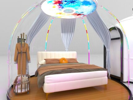 A modern glass dome capsule designed for immersive living and unique experiences. With a panoramic structure and open interior, it’s ideal for dining, leisure, events, and boutique hospitality use.