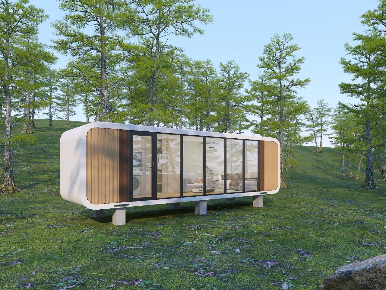 A sleek modular living pod designed for contemporary lifestyles. Panoramic glass, clean lines, and a smart interior layout create a bright, modern living experience ideal for residential and commercial use.