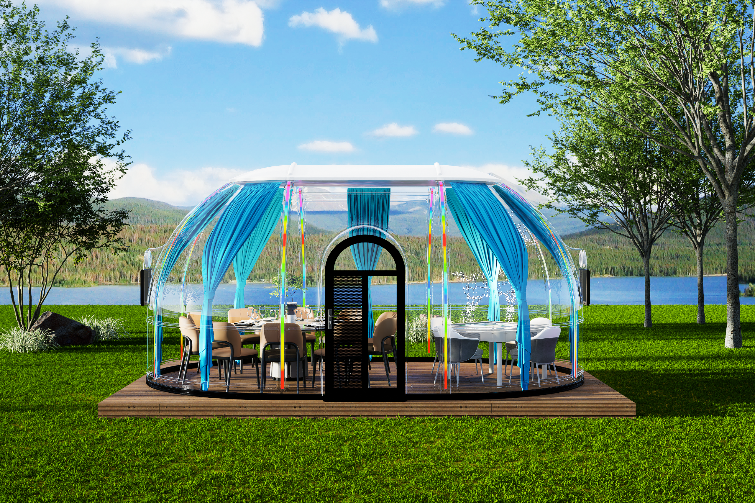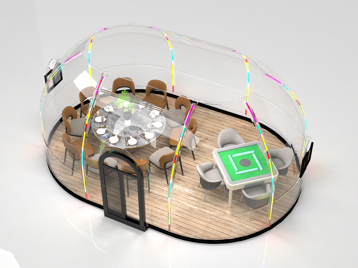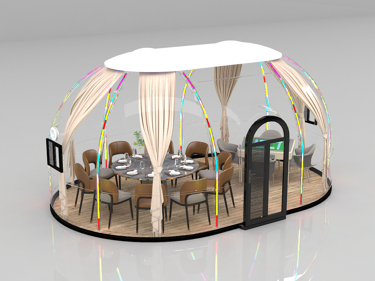Designed for flexibility and quick installation, this dome capsule is perfect for outdoor dining areas, cafés, resorts, events, lounges, and experiential spaces. Fully enclosed and weather-resistant, it provides comfort, protection, and standout aesthetics in one elegant solution.
